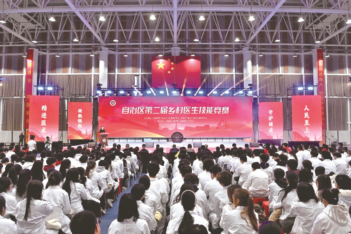 图为新疆维吾尔自治区第二届乡村医生技能竞赛开幕式。